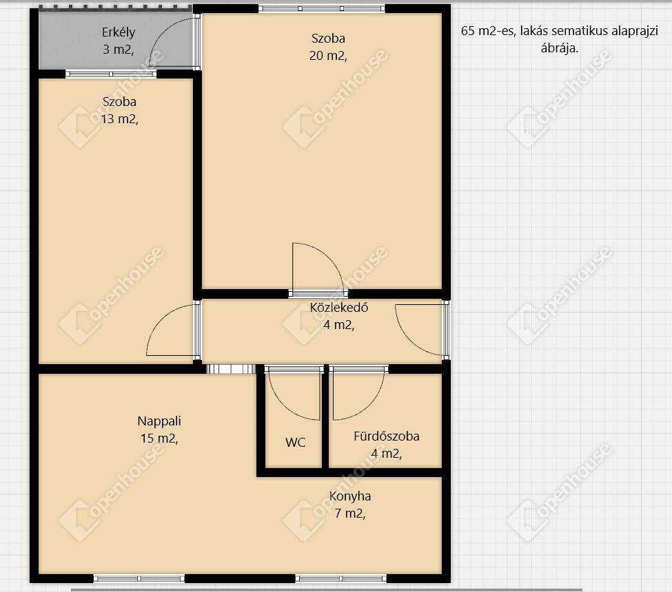 - tégla építésű, 65 m2, nappali + 2 szoba