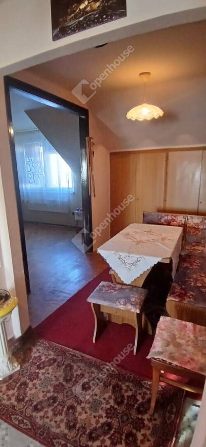 A tetőtéri, 56 m²-es ingatlan jelenlegi elrendezésében 2 szobás, étkezővel, konyhával, közlekedővel, kis kamrával és fürdőszobával (WC-vel együtt) rendelkezik. Az alaprajz jól alakítható, így igény szerint 1+2 félszobás lakás is kialakítható belőle.