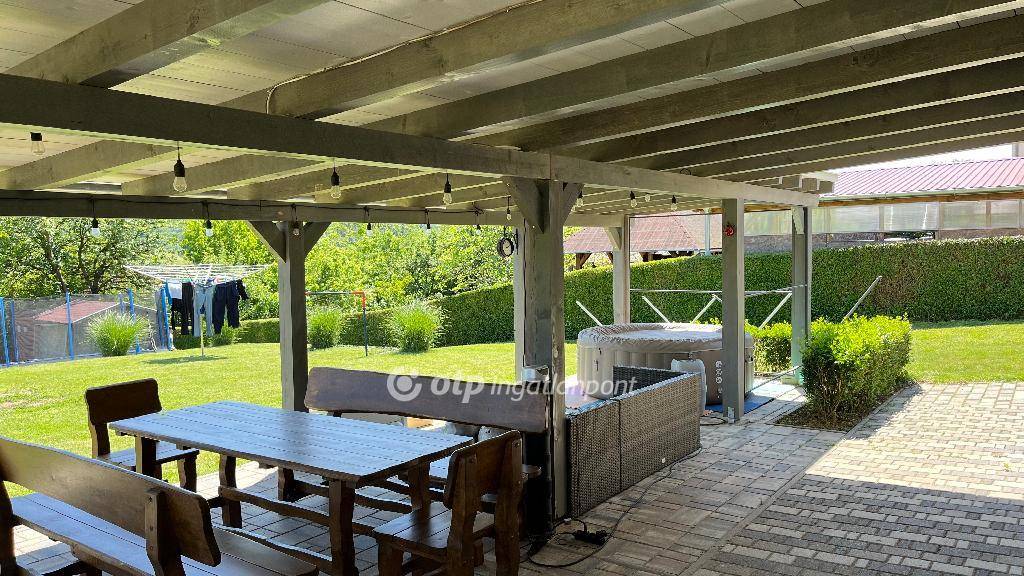 A ház igazi gyöngyszeme a közel 50 m2 ? es fedett terasz, mely kellemes helyet biztosíthat a nagy családi, vagy baráti összejöveteleknek.