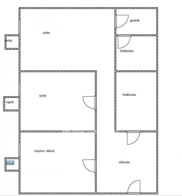 A lakás elrendezése praktikus és kényelmes: két külön nyíló szoba, konyha?étkező, gardrób, valamint két fürdőszoba (az egyikben tusoló, a másikban kád) szolgálja a lakók kényelmét.