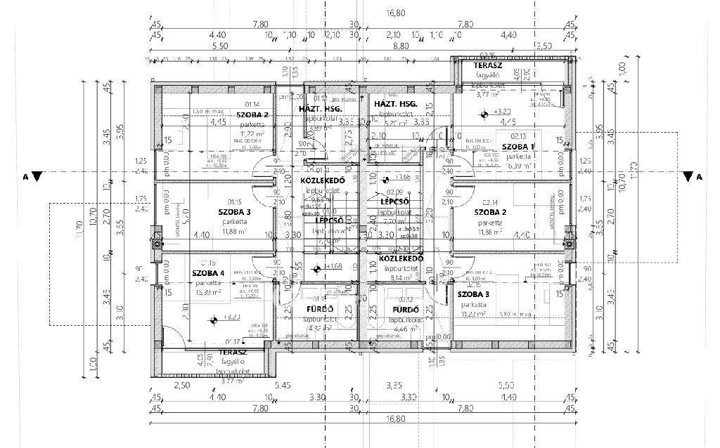 Elrendezés: Földszint: nappali-konyha-étkező + fürdőszoba + terasz + kertkapcsolat Emelet: 3 szoba + fürdőszoba + háztartási helyiség + közlekedő + erkély