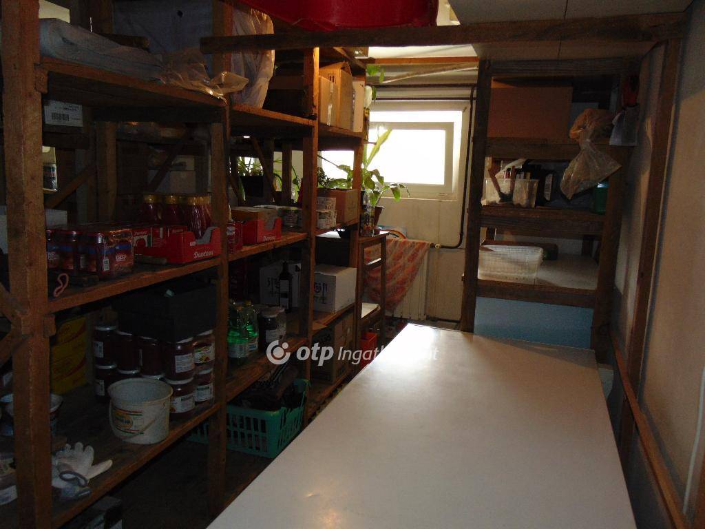 Földszint: klimatizált üzlethelyiség + kiszolgáló helyiségek (2 db. raktár, 2 db. tároló, 2 WC, kézmósó, iroda helyiség, kazánház), kamera és riasztórendszer.