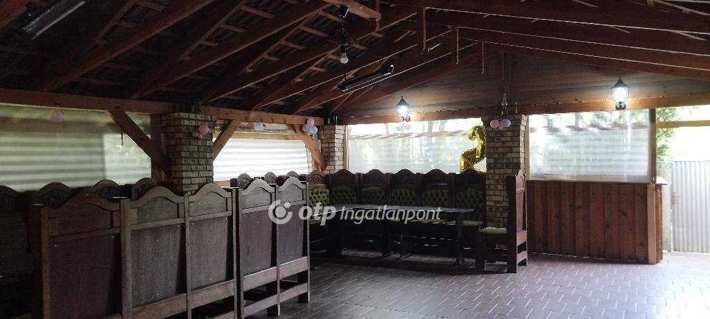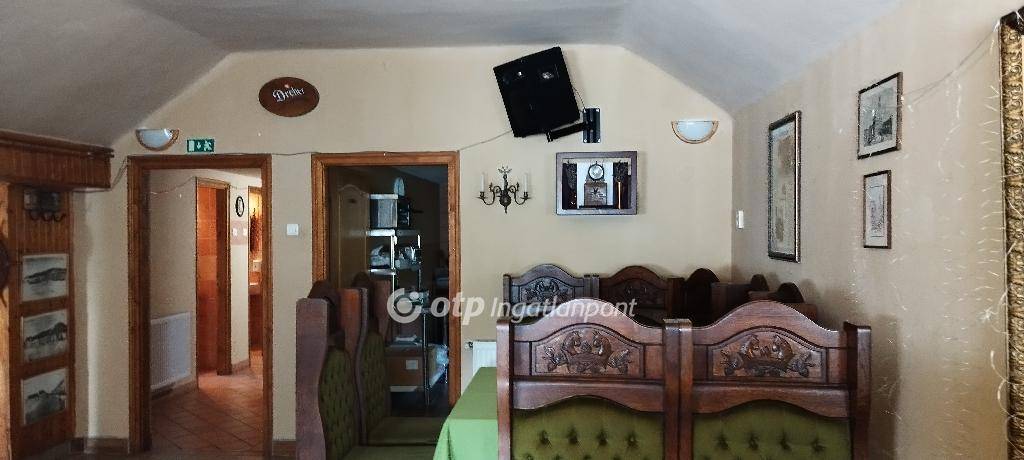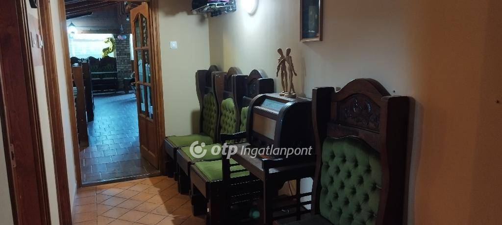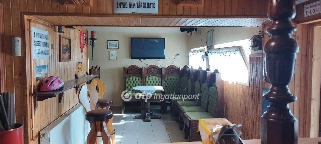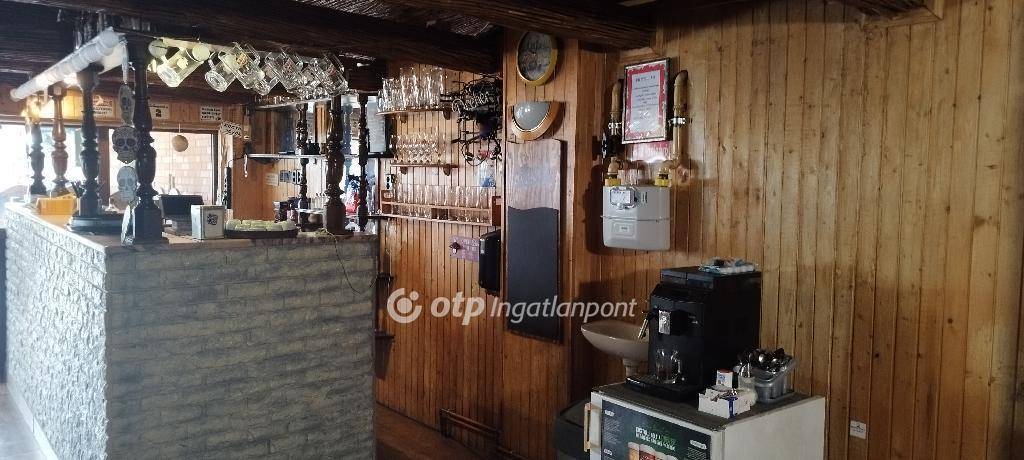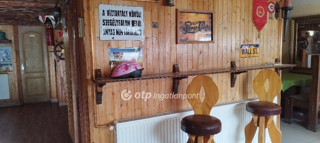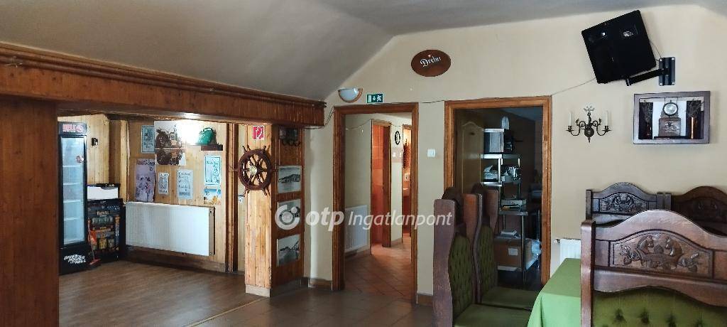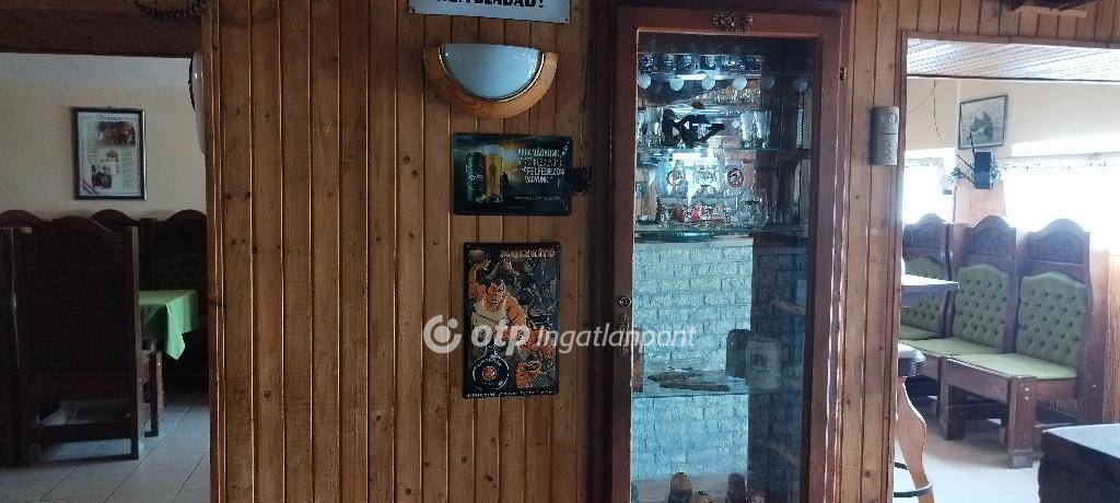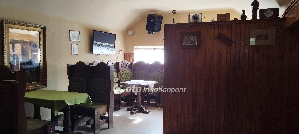 A hozzá tartozó üzlethelyiség korábban vendéglőként és sörözőként működött, és a benne található, kézzel készített, kiváló állapotú bútorok az ingatlan részét képezik - ezek tökéletesen illeszkednek a hely hangulatához. Elöl egy fedett és egy nyitott terasz is található, ami ideális szabadtéri vendéglátásra. Az épületben elől található egy vendégtér bárpulttal, konyha raktárral, egy személyzeti mosdó, valamint egy külön közlekedőfolyosó, ami összeköti a vendégteret és a rendezvénytermet, és innen érhetők el a női és férfi vendégmosdók. A vendéglő három külön bejárattal is rendelkezik, ami nagyfokú rugalmasságot biztosít az új tulajdonos számára.