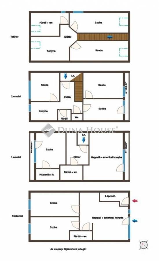 Az épület három szintjén 4 teljesen különálló apartman került kialakításra, összesen 10 szobával.