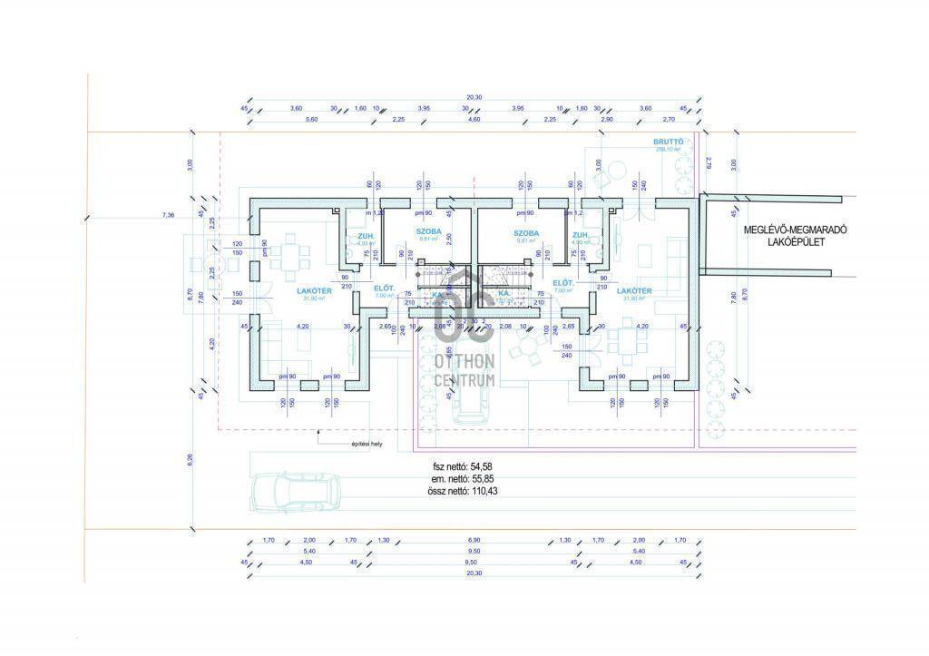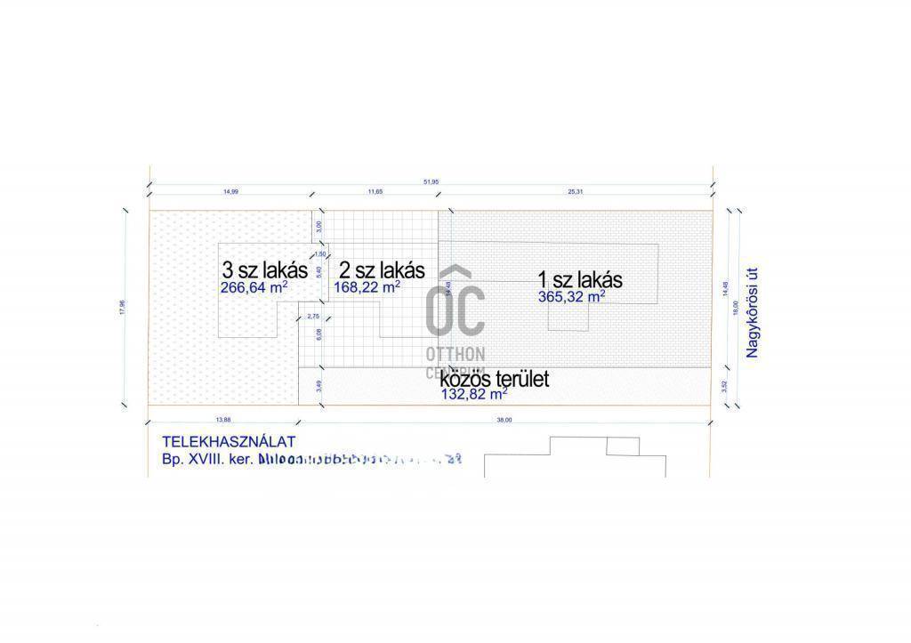 A telek 266.64m2 a Telekhasználaton 2. lakás!