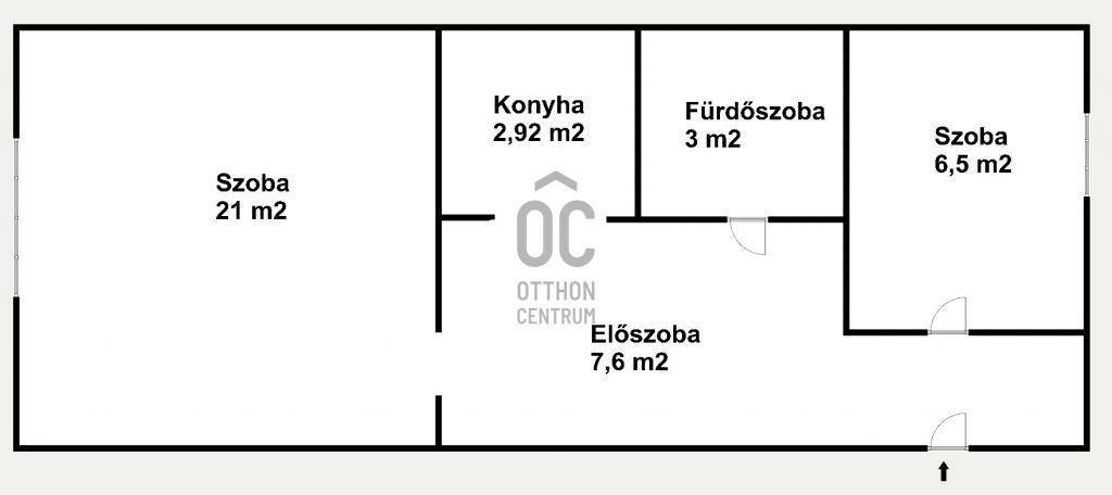 részei: nappali, hálószoba, konyha, fürdőszoba, előszoba.