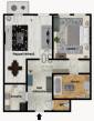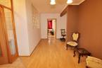 Ideális elrendezésű, a nagy nappali (melyről a terasz nyílik) és a tágas hálószoba mellett, egy részben üvegtéglás fallal elválasztott előtérből és onnan nyíló gépiesített konyhából, valamint fürdőkáddal felszerelt fürdőből és különálló WC-ből áll.