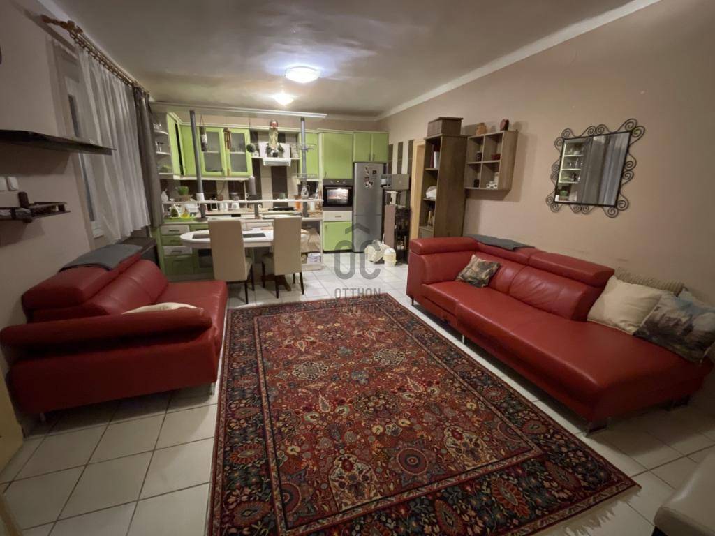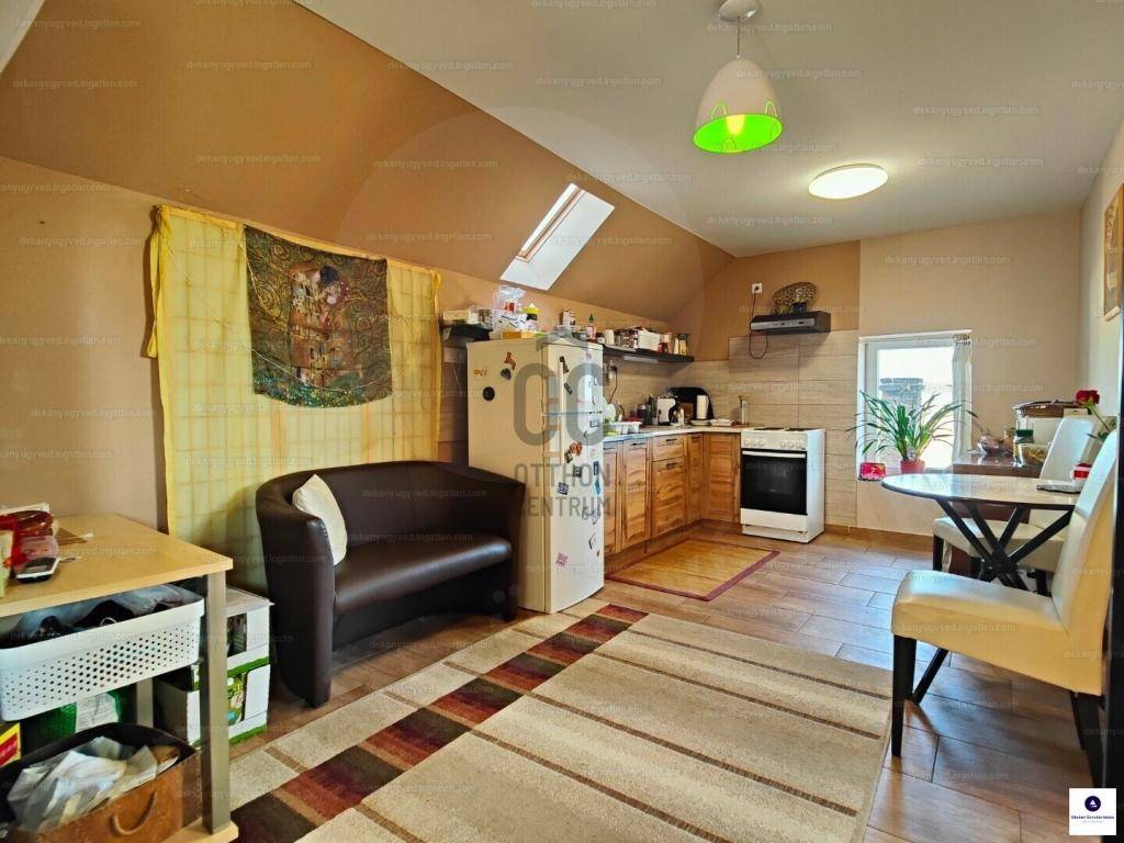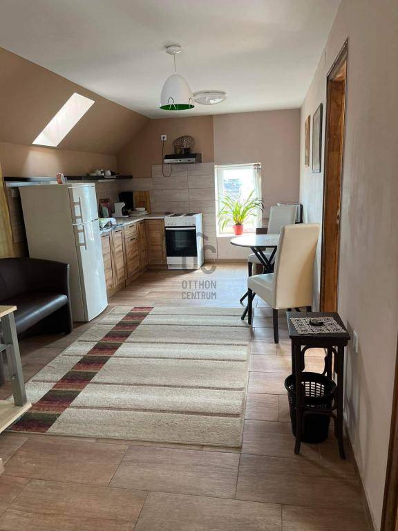 A tetőtérben szintén egy tágas nappali-konyha-étkező, 2 szoba, külön fürdő és wc került kialakításra.