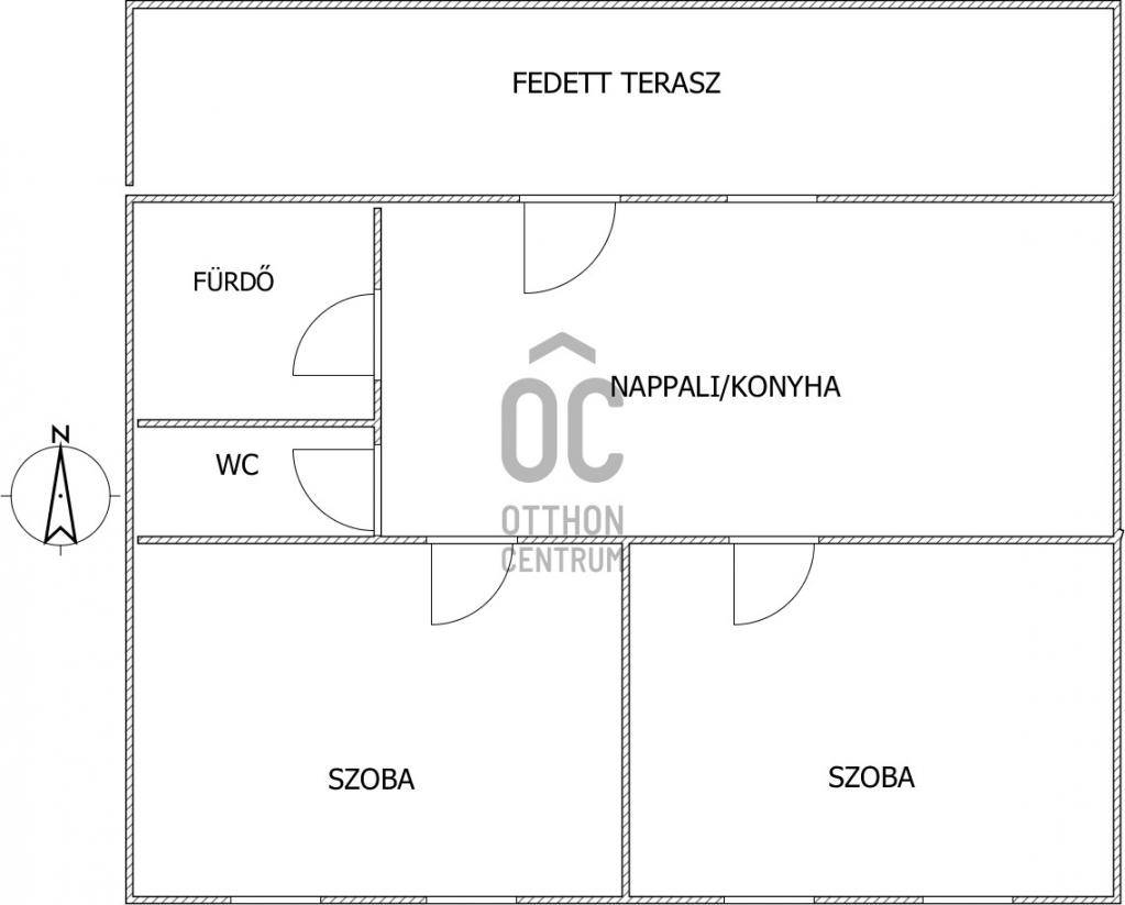 Az 1. szinten található egy tágas nappali-konyha-étkező, 2 szoba, fürdő és wc külön helységben. A nappali előtt a fedett terasz biztosít lehetőséget a kényelmes pihenésre, kikapcsolódásra.