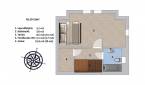 - Az alsó szint felosztása: előszoba, nappali-konyha-étkező, szoba, fürdőszoba-WC.