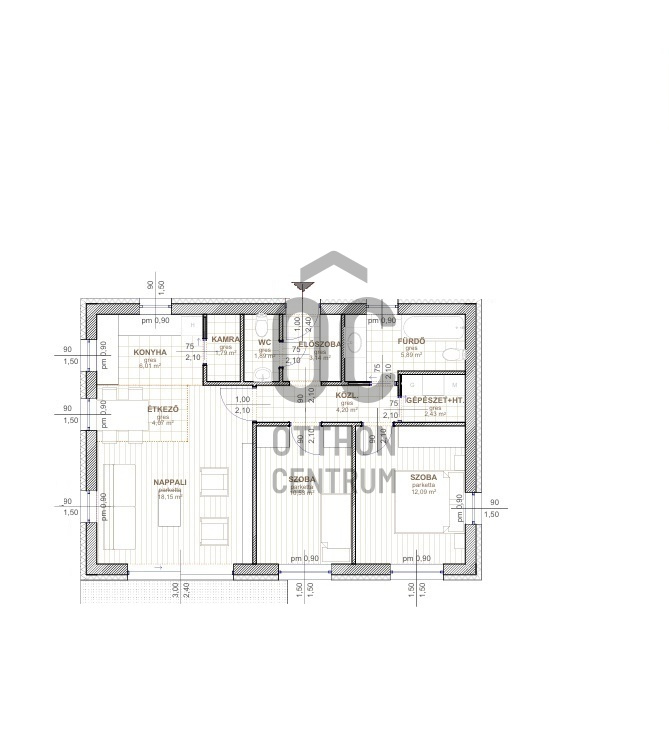 - a belső elrendezés, helyiségkiosztás szabadon variálható