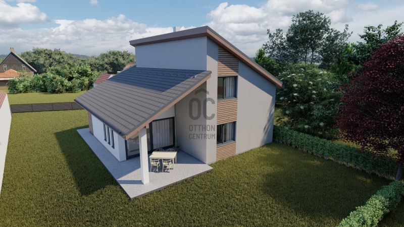 A 490 m2-es telek, saját kerttel és udvari kocsibeállóval rendelkezik.