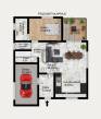A földszinten a nappali, konyha + étkező, egy hálószoba, fürdőszoba és a közlekedőből nyíló toalett kerül kialakításra.