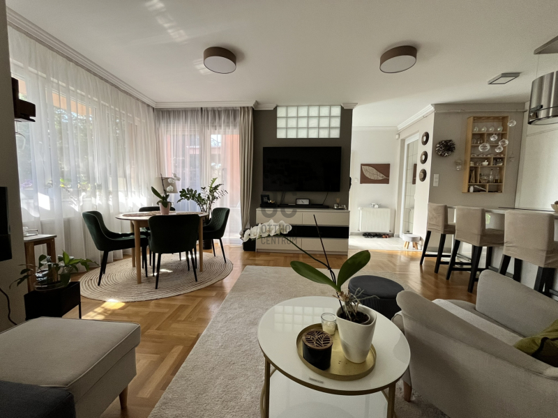 Eladó Budapest közkedvelt, csendes, zöld, kertvárosi környezetében a XV. kerületben, Pestújhelyen egy tágas, modern, 3 szintes, önálló előkerttel rendelkező sorházi lakás.