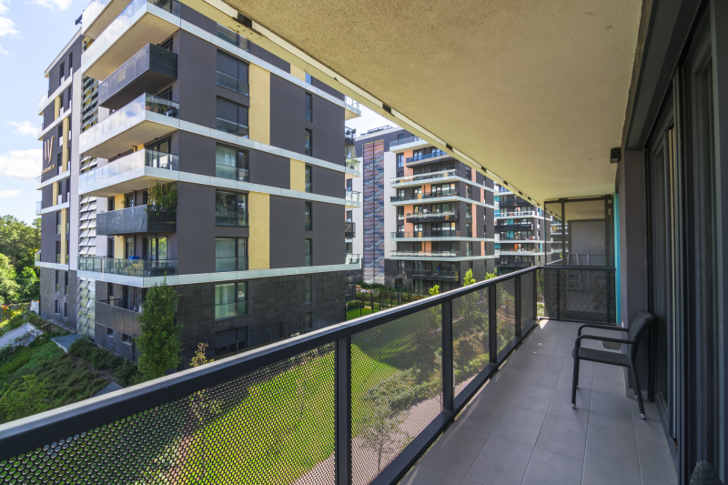 Mindkét hálószoba rendelkezik külön erkéllyel, de a nagyobb méretű terasz a nappaliból is megközelíthető.