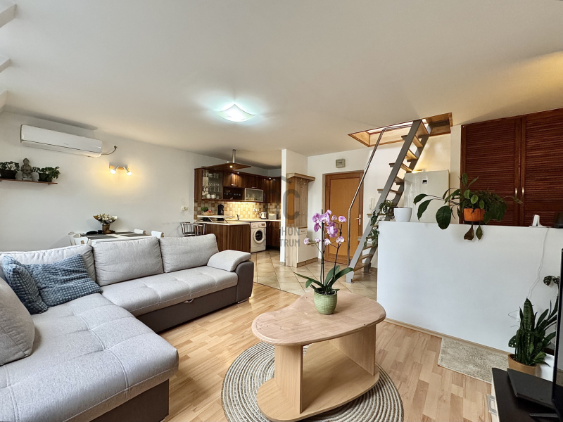 Az ingantan összesített lakótere 86 nm, melyből a nettó : 66 nm, belső két szintes, nappali-konyha étkező, hálószoba, fürdő, külön wc az az alsó szinten, míg további kettő szoba, galéria, a felső szinten található.