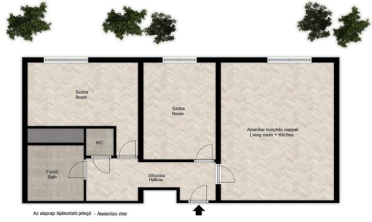 Igény szerint a lakás amerikai konyhás nappali + 2 szobássá alakítható.