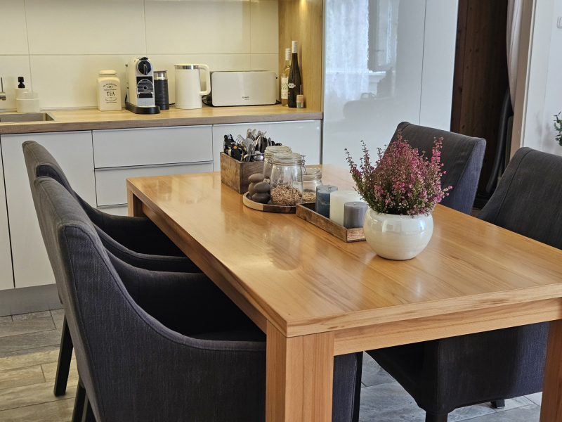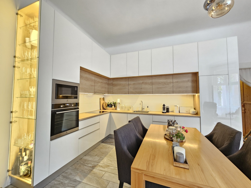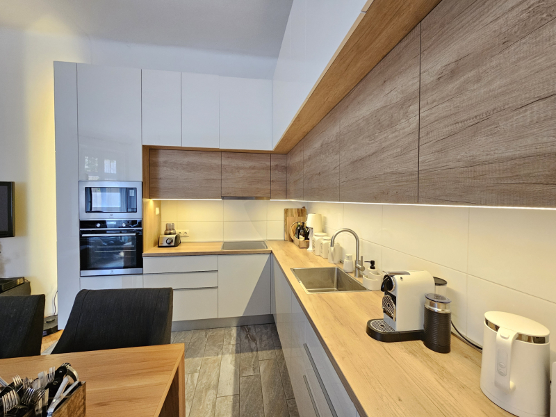 Praktikus elrendezésének köszönhetően megtalálható benne egy amerikai konyhás nappali. A konyha 2024-ben készült teljesen gépesített, beépített hűtőszekrény és fagyasztó, sütő, mikrósütő, 13 terítékes mosogatógép, extra tárolók és ledes világítással felszerelt vitrin.