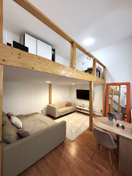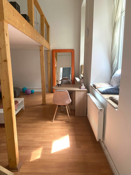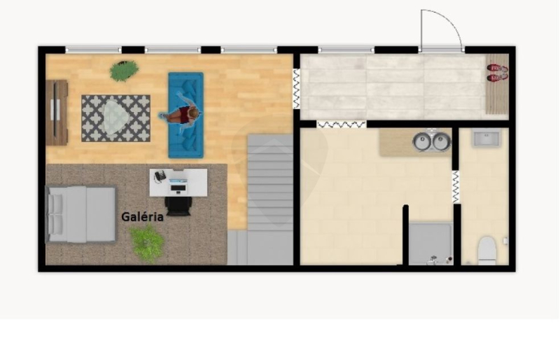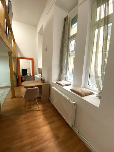 A bútorozott ingatlan elrendezését tekintve egy előszobából, modern, gépesített konyhából, zuhanyzóból, külön wc-ből és egy 13 m²-es ÁLLÓGALÉRIÁVAL felszerelt nappaliból áll. A galérián egy kényelmes francia ágy, illetve praktikus pakolórészek találhatók. A három hatalmas ablakának köszönhetően jóval VILÁGOSabb, mint más földszinti ingatlanok, ide még a Nap is besüt! A lakás hangulatosan berendezett, modern fiatalos bútorokkal, nagy tárolókapacitással.
