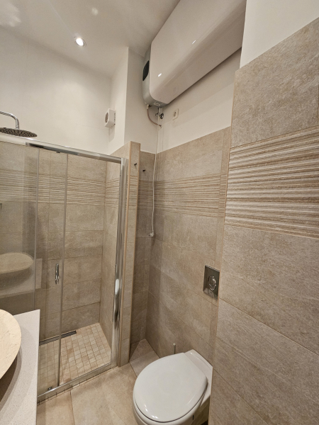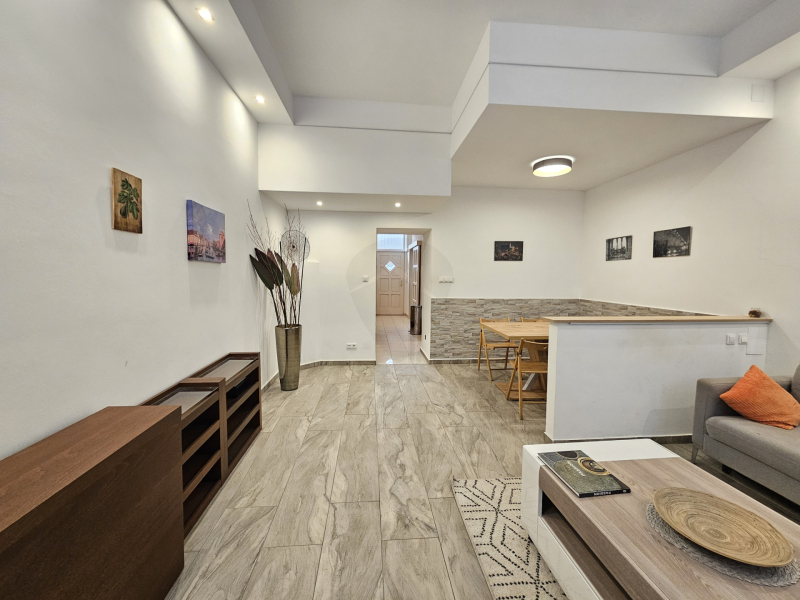 Az ingatlanba belépve a világos előtérbe érkezünk, tőlünk balra találjuk a hálószobát, előttünk pedig a konyha kapott helyet. Tovább haladva bal oldalt nyílik az igényesen felújított fürdő, beépített szagelszívóval, egyenesen pedig a tágas nappali. Itt igényesen kialakított álmennyezetbe épített világítás és délnyugati fekvésű modern műanyag ablakok biztosítják mindenkor a fényt a térben.