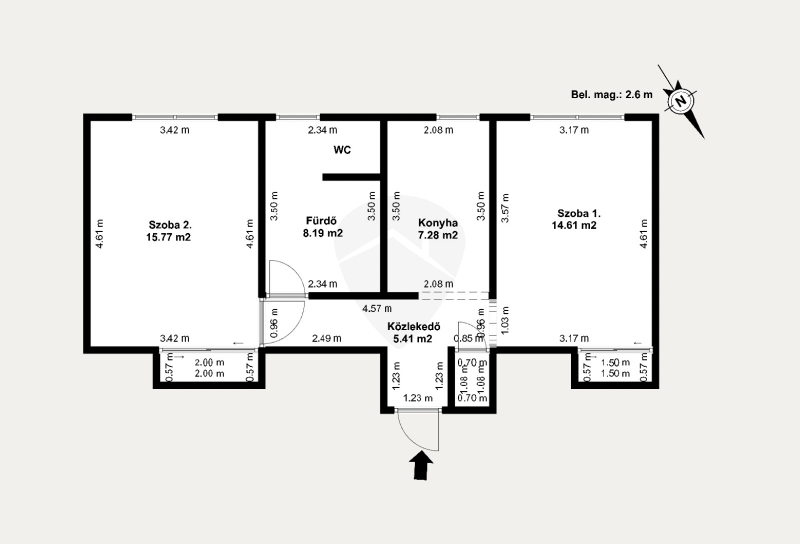 - 2 külön nyíló szoba + nappali