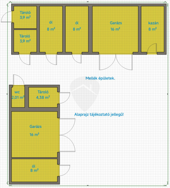 - kb. 100 négyzetméter melléképület (tároló, ólak, 2 garázs, kazánház)