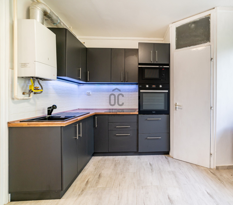 >> Alsó szinten felújított helyiségek: új konyhabútor, új burkolatok, felújított fürdőszoba