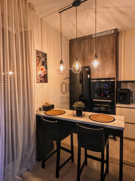 A tágas, világos nappali-étkező prémium fa bútorokkal, lágy textúrájú textilekkel és ízléses dekorációval gazdagodik, mely relaxált, ugyanakkor kifinomult légkört teremt. A magas minőségű anyagok és a természetes fényáradat egyedi atmoszférát alkot.