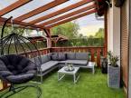 A nagy ablakokból és nyílászárókból gyönyörű kilátás nyílik a rendezett kertre és a teraszra.