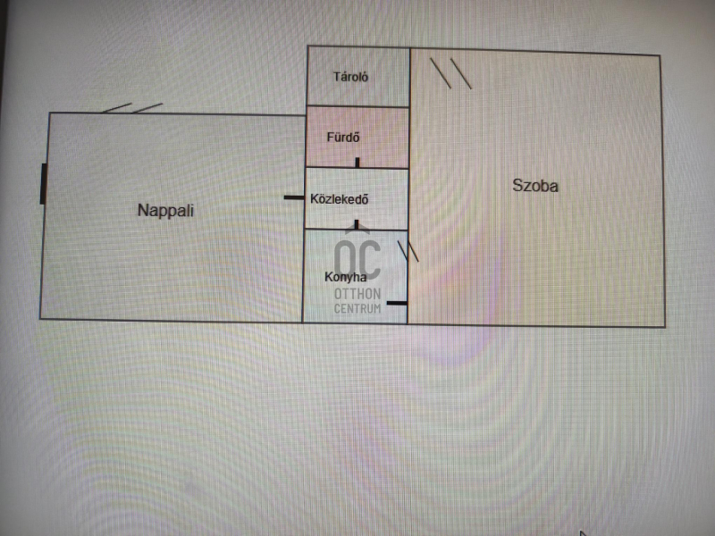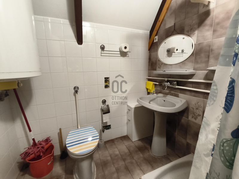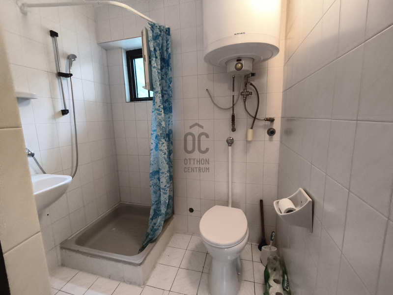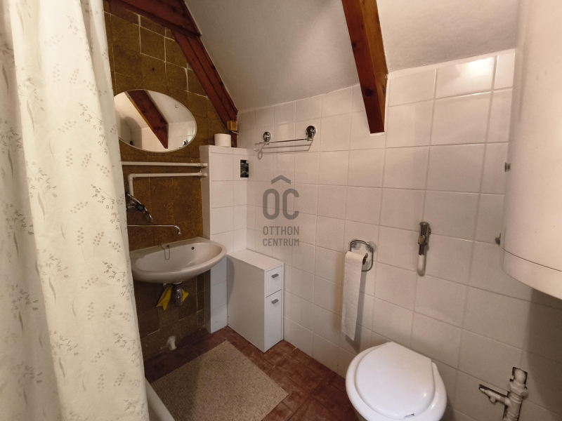 Téglaépület 26 nm-es, amerikai konyhás nappali, fürdőszoba, tetőterében háloszoba lett kialakítva.