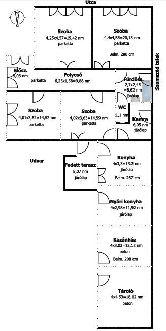 A telek 2031 négyzetméter, rendezett udvarral, garázzsal, melléképülettel, kiskonyhával, kazánházzal, tárolóval – sőt jó állapotú állattartásra alkalmas épületekkel is.