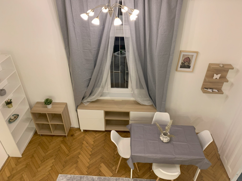 A nagy belmagasság lehetővé tette a tágas galéria kialakítását, amely különösen vonzó lehet fiatal szakembereknek vagy diákoknak. A konyha, a WC és a fürdőszoba külön helyiségben található, mindegyik saját ablakkal rendelkezik. A minimalista, modern kialakítás és a kulcsrakész állapot garantálja, hogy a lakás azonnal költözhető vagy bérbe adható.