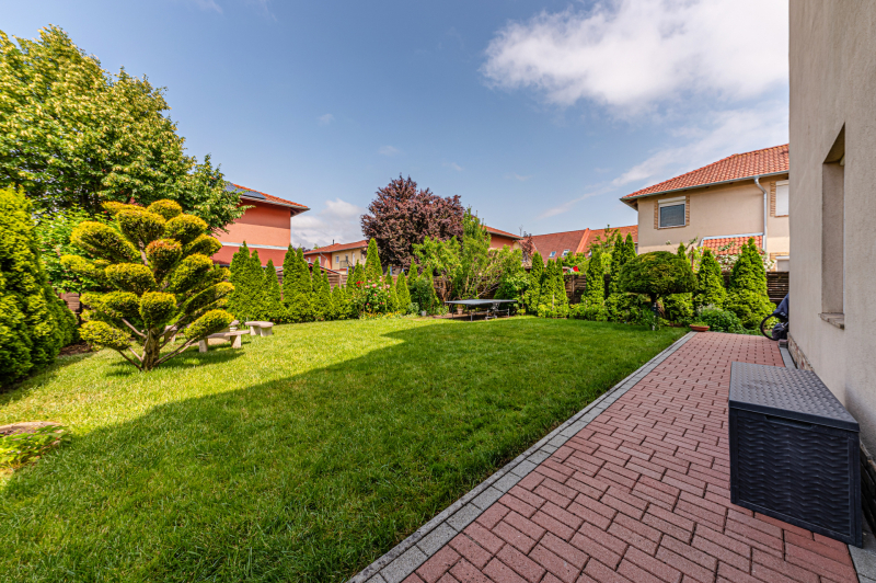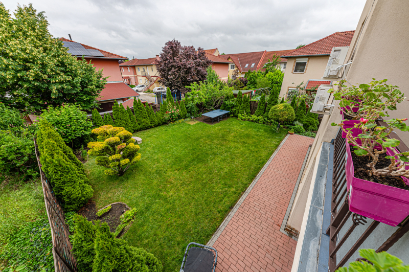 Összesen 6 szoba, 2 konyha, 2 fürdő, 2 WC, erkély, terasz, 211 nm-es saját kert külön bejárattal, kerti tárolóval és két saját udvari parkolóval.