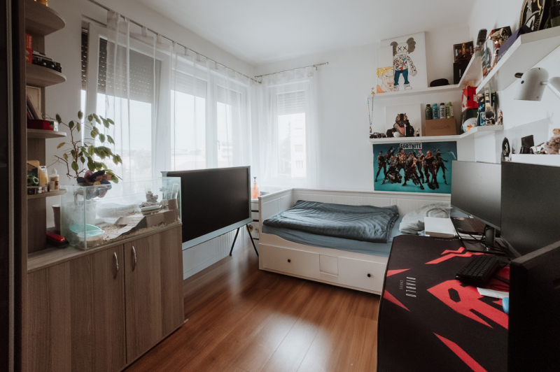 A lakás világos, hiszen a nagy ablakoknak köszönhetően a napfény szinte minden szegletét elárasztja, így a modern és egyedi tervezésű belső tér barátságos és hívogató atmoszférát teremt. Az ingatlan részben bútorozott és gépesített, így azonnal költözhető, ami különösen előnyös lehet a családok számára, akik nem szeretnék a költözést hosszadalmasan előkészíteni.