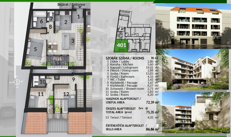 Az ingatlan alapterülete 84nm, amely négy tágas szobát rejt ,a belső 2 szinten elosztva, így bőséges teret biztosít a mindennapi élethez. Az alsó, és felső szinten is található fürdőszoba egyedi tervezésű, és a világos amerikai konyhás nappali tökéletes helyszín a családi összejövetelekhez vagy baráti találkozókhoz.