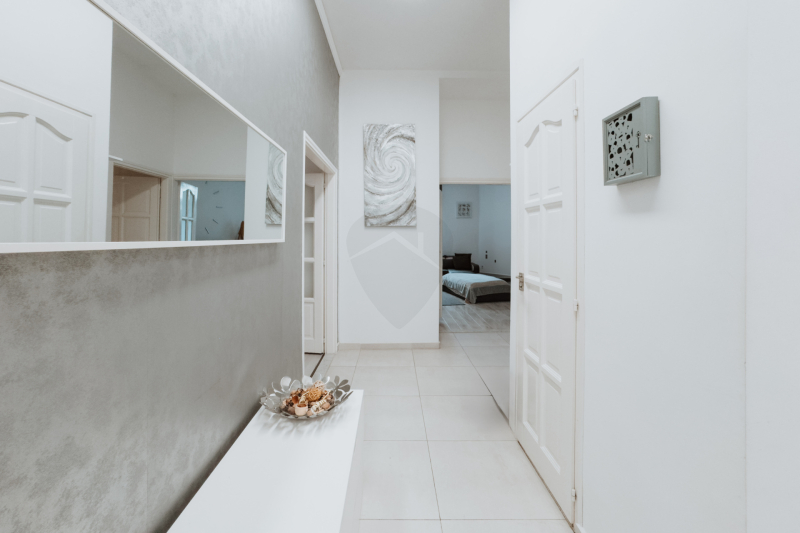 Az enteriőr elegáns, mégis élhető: modern vonalvezetés, finoman megválasztott anyagok, arányos terek. A belső udvarra néző, privát terasz egy másik világ – csendes, intimebb, és éppoly figyelemre méltó, mint a kilátás maga.