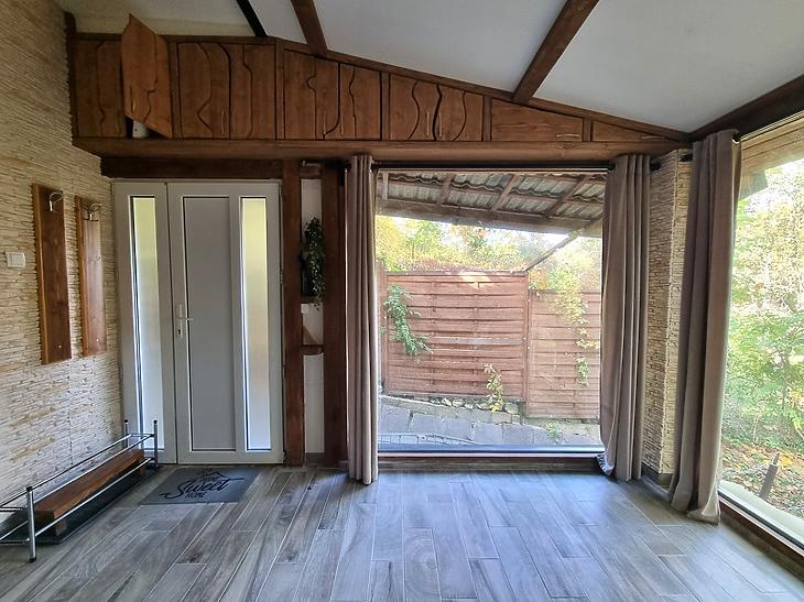 Az ingatlanhoz saját, kb. 150 m²-es kert és garázs tartozik, csendes környezetben, murvás út vezet az ingatlanhoz, kb. 350 m hosszban.