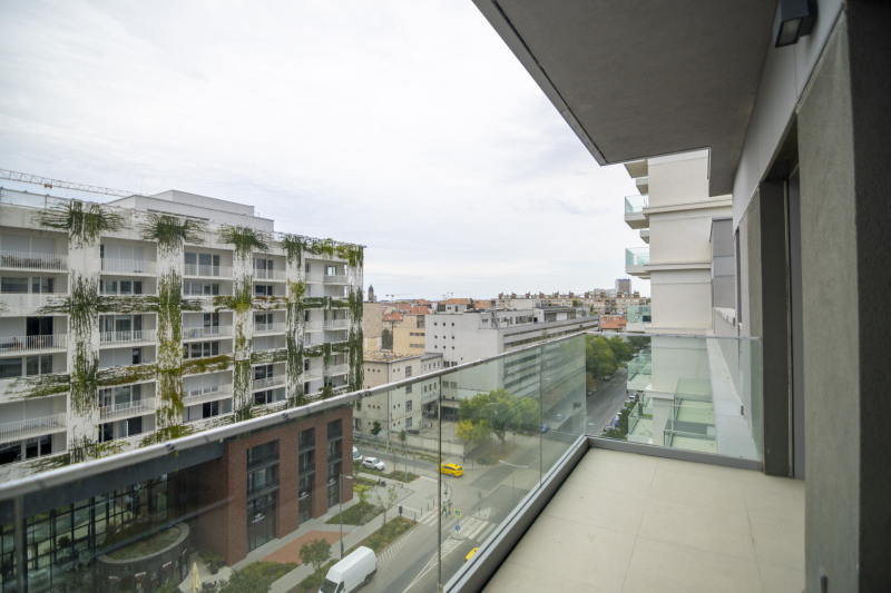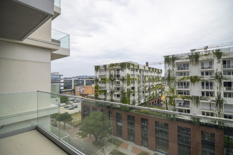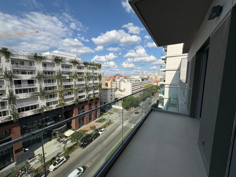 A lakás 8. emeleten található, ablakai és az erkélyei városi panorámával rendelkeznek utcai nézetűek. Délnyugati fekésévének köszönhetően a lakás nagyon világos.