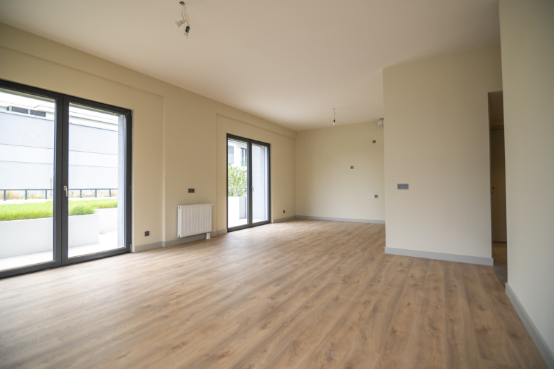 Padlóburkolat: Jó minőségű laminált padló lesz telepítve egy vékony szigetelő