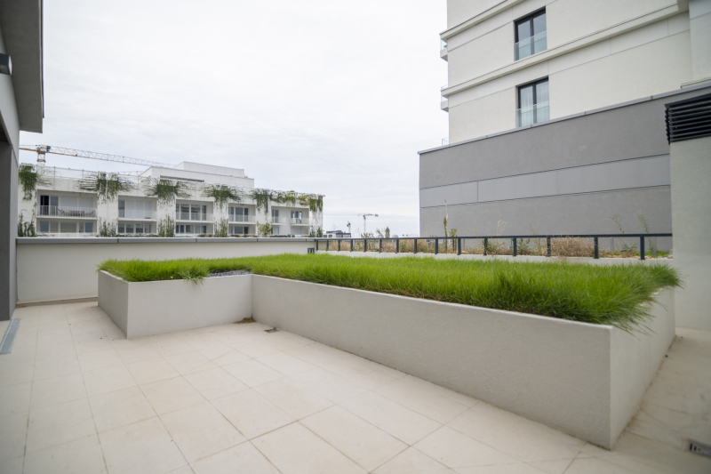 A CITY PEARL lakópark első ütemében átadott (2025. januárban) társasház 8. emeletén található VÁROSI PANORÁMÁS nagy teraszos, teraszkertes, erkélyes lakás.