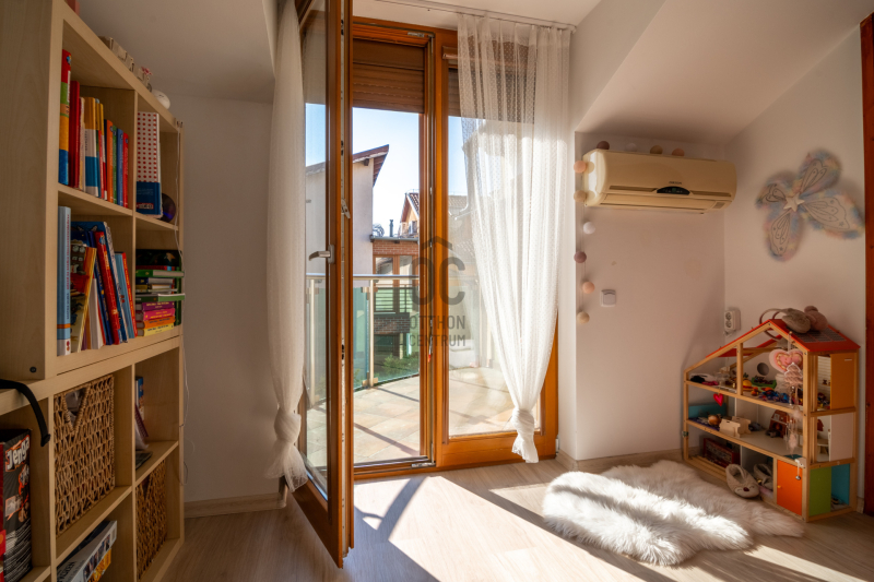 Fekvéséből adódóan szép világos,ablakaiból és a teraszokról zseniális panoráma nyílik a budai hegyekre.
