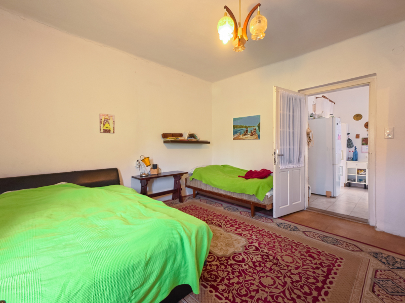 A ház két hálószobája és tágas nappali étkezője rengeteg lehetőséget kínál a pihenésre és a közös pillanatokra. Egy jól kihasználható, fúrt kút biztosítja a vízellátást, nem csak a kertben, hanem akár az egész ház számára. De természetesen van vezetékes víz a házban, így nem kell aggódni a víz miatt, akár kertészkedéshez vagy kinti játékokhoz is. Két fedett terasz várja a vendégeket: az egyik ideális reggeli kávézásokhoz és kiülős beszélgetésekhez, a másik pedig a családi és baráti összejövetelek színhelye lehet, kemencével és sütögetőhellyel, ahol a nyár minden pillanata különleges lesz.