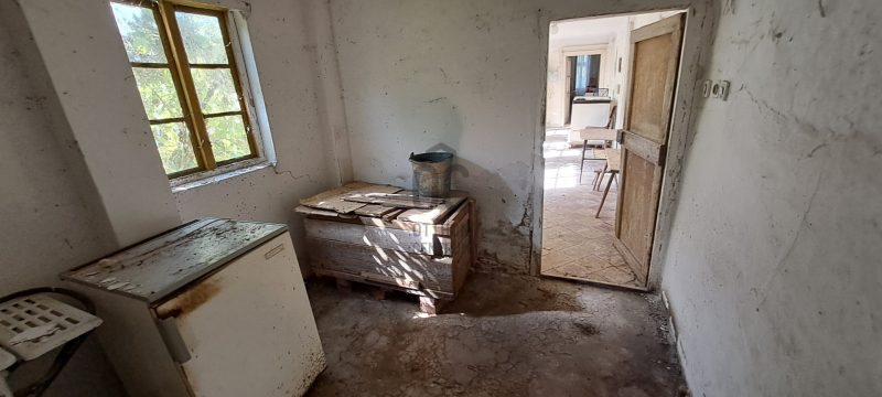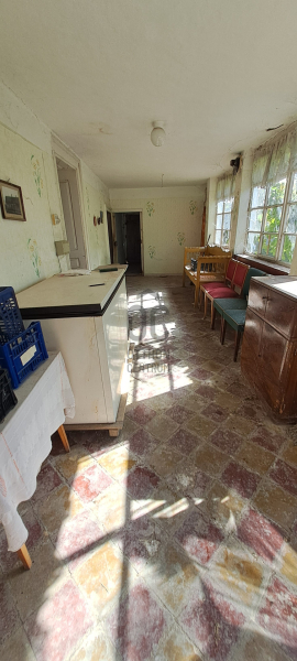 A ház 2 szobából áll, amelyekből kiérve egy hosszú és széles folyosó található. Az ingatlanhoz tartozik még fürdőszoba wc-vel, konyha, kamra és tároló. Az egyik szoba pozdorja, míg a másik beton, ami pvc-vel van bevonva. Az előszobában, a konyhában, kamrában és a fürdőszobán járólap, míg a tároló betonos padlóval rendelkezik. A fürdőszobában villanybojler gondoskodik a melegvízről.