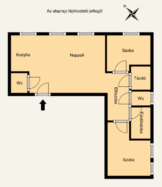 * Amerikai konyhás nappali+étkező, 2 szoba, fürdőszoba, külön wc, tároló