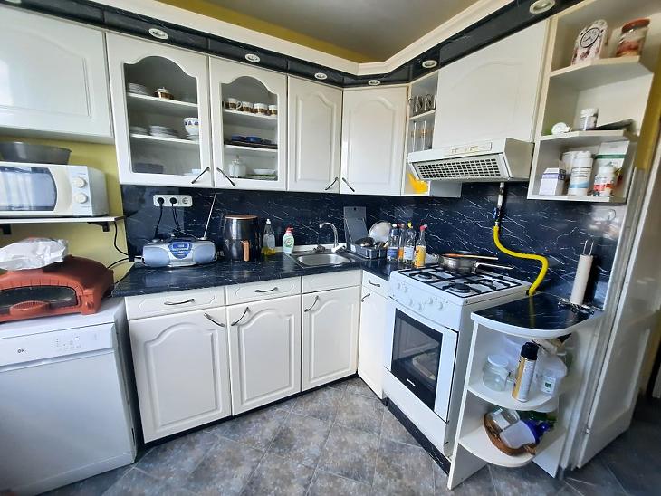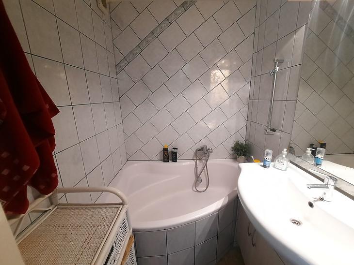 A burkolatok, fürdő és konyha szép, ápolt állapotúak, használatra kész, rendezett otthont kínálnak. A fürdőszoba sarokkádas, a WC külön helyiségben található, ahol egyben két vízóra is van, ami a fogyasztás pontos mérését teszi lehetővé.