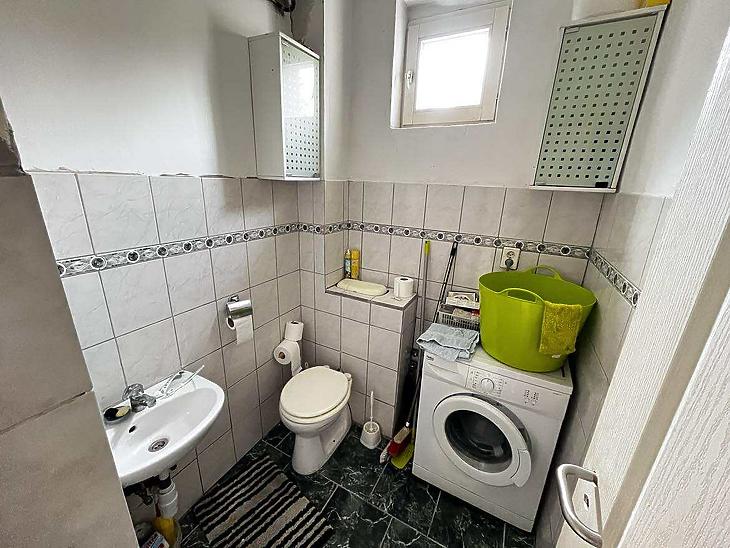 Az épület tégla és körbejárható. A földszinten: előszoba, 2 szoba, konyha, kamra fürdőszoba és mellékhelyiség. Emeleten: 3 szoba, fürdőszoba, étkező, konyha, spejz. A ház fűtése kombi cirkóval megoldott. Az emelet 2007-ben épült a házra, a tetőszerkezet 2008-ban lett kicserélve, kőzetgyapot szigetelést kapott. Az alsó szint műszakilag eredeti állapotában van. A telek 540 m2 nagy udvarral, 16 m2 terasszal és fészerrel rendelkezik.
