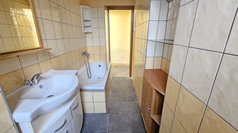 Fürdőszobája kádas, és itt kapott helyet a Wc is, nagy ablakának köszönhetően ez a helyiség is világos jól szellőztethető.