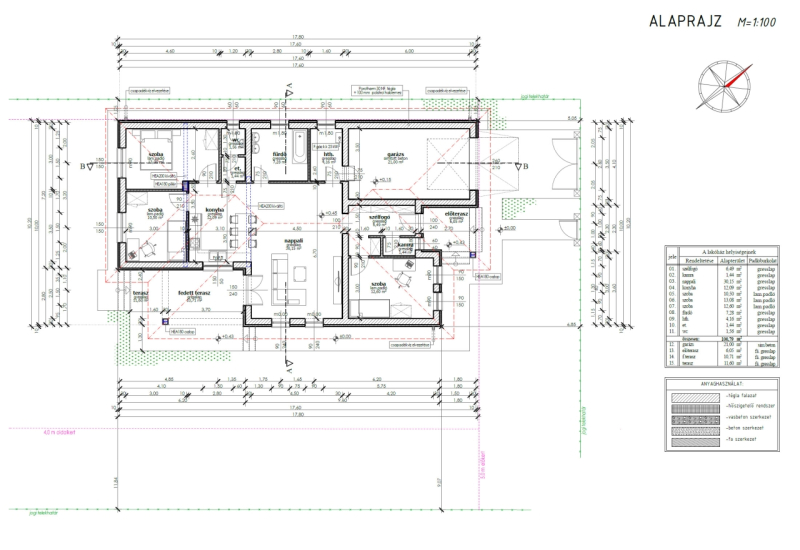 A tető héjazata antracit betoncserép lesz, a homlokzatok 15cm EPS, a padló 10cm Austrotherm AT-N100-as, a vízszintes födém 25cm Ásványgyapot szigeteléssel lesz ellátva.