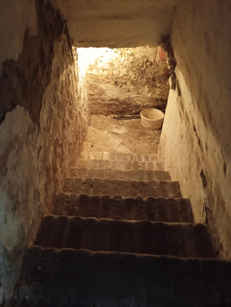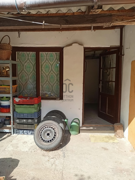 A ház mögötti tárolóból jó állapotú és méretű pince nyílik.