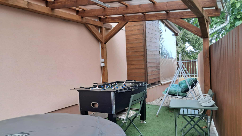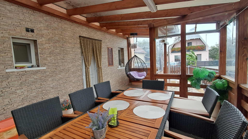 A kétszintes épület kialakítása praktikus és sokoldalú: három különnyíló félszoba és két tágas nappali biztosítja a kényelmet akár nagyobb család, akár vendégek számára. Az ingatlan különlegessége a hatalmas, téliesíthető terasz, amely ideális helyszíne baráti összejöveteleknek, családi vacsoráknak vagy egyszerűen a nyugodt pihenésnek. A parkosított, gondozott udvarban fűthető jacuzzi, szalonnasütő és bográcsozóhely is helyet kapott, így a kikapcsolódás télen-nyáron garantált.